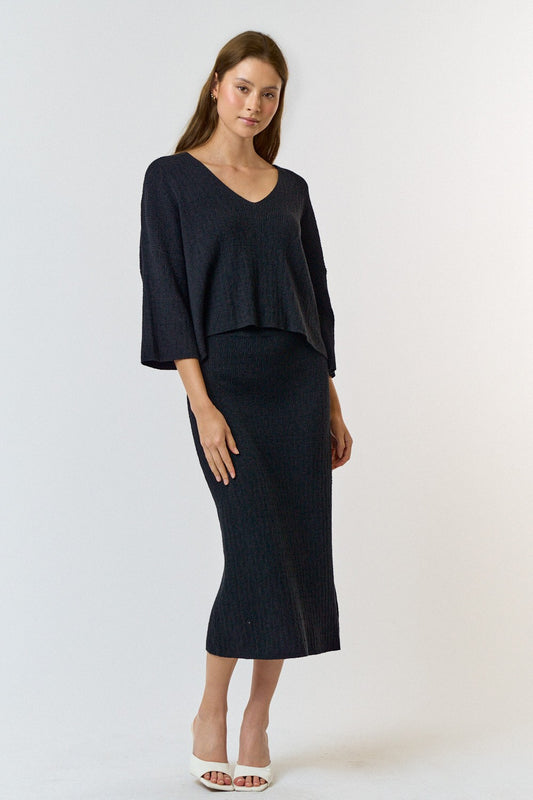 Color Block Sweater Top and Midi Skirt Set