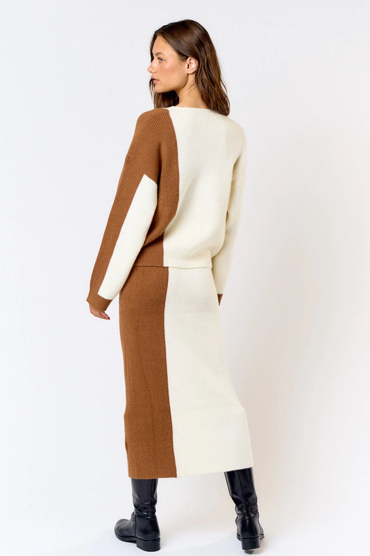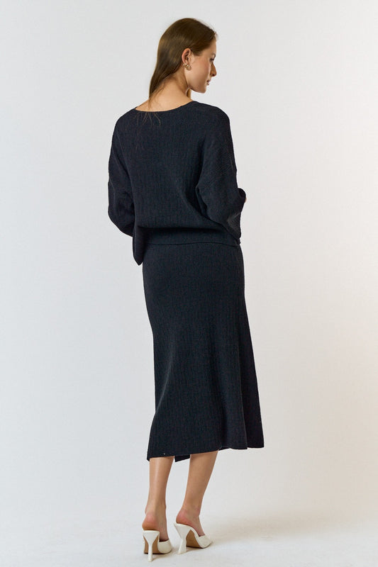 Thin Ribbed Long Sleeve Top and Maxi Skirt Sets